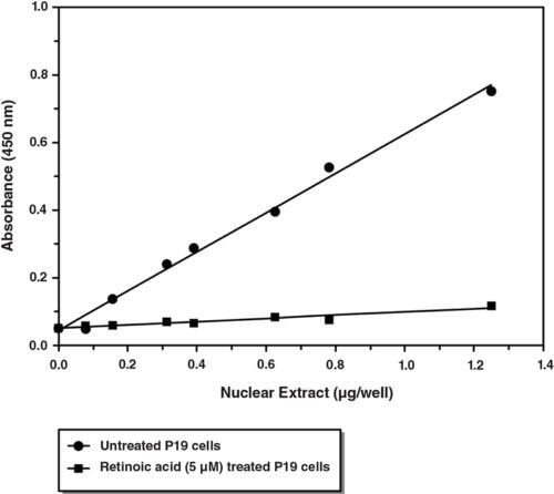 STAT3 is activated by phosphorylation at tyrosine 705 (phospho-Tyr705) in response to stimulation with cytokines or growth factors. Continuous activation of STAT3 is required in maintaining the pluripotency of mouse embryonic stem cells. Cayman’s STAT3 Transcription Factor Assay Kit uses a 96-well DNA-coated plate to measure the DNA binding activity of STAT3 from nuclear extracts. This kit uses a highly specific monoclonal antibody, providing an excellent signal-to-background ratio.