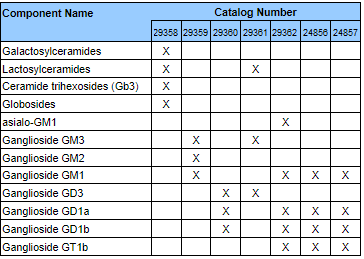 The antibodies are directed against the carbohydrate chains of ganglioside and globoside glycolipids. The same carbohydrate moieties are found on many glycoproteins. All antibodies are quality tested by actual ELISA and TLC immunoblotting analysis.