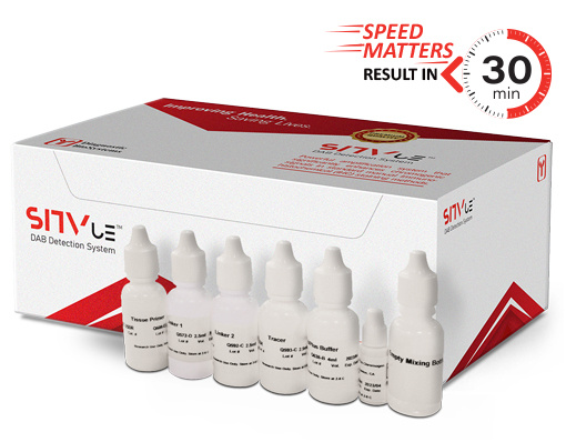 SITVue /DAB Detection System is a powerful Intensification system that significantly enhances chromogenic signals. This system can be integrated into standard immunohistochemistry (IHC) staining methods.
