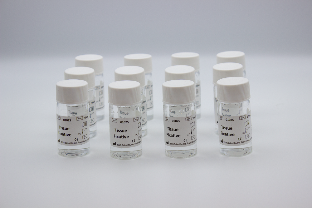 - When the Tissue Fixative is received from the physician the contained tissue specimen should be carefully removed from the fixative and placed in the ZEUS Wash Solution.